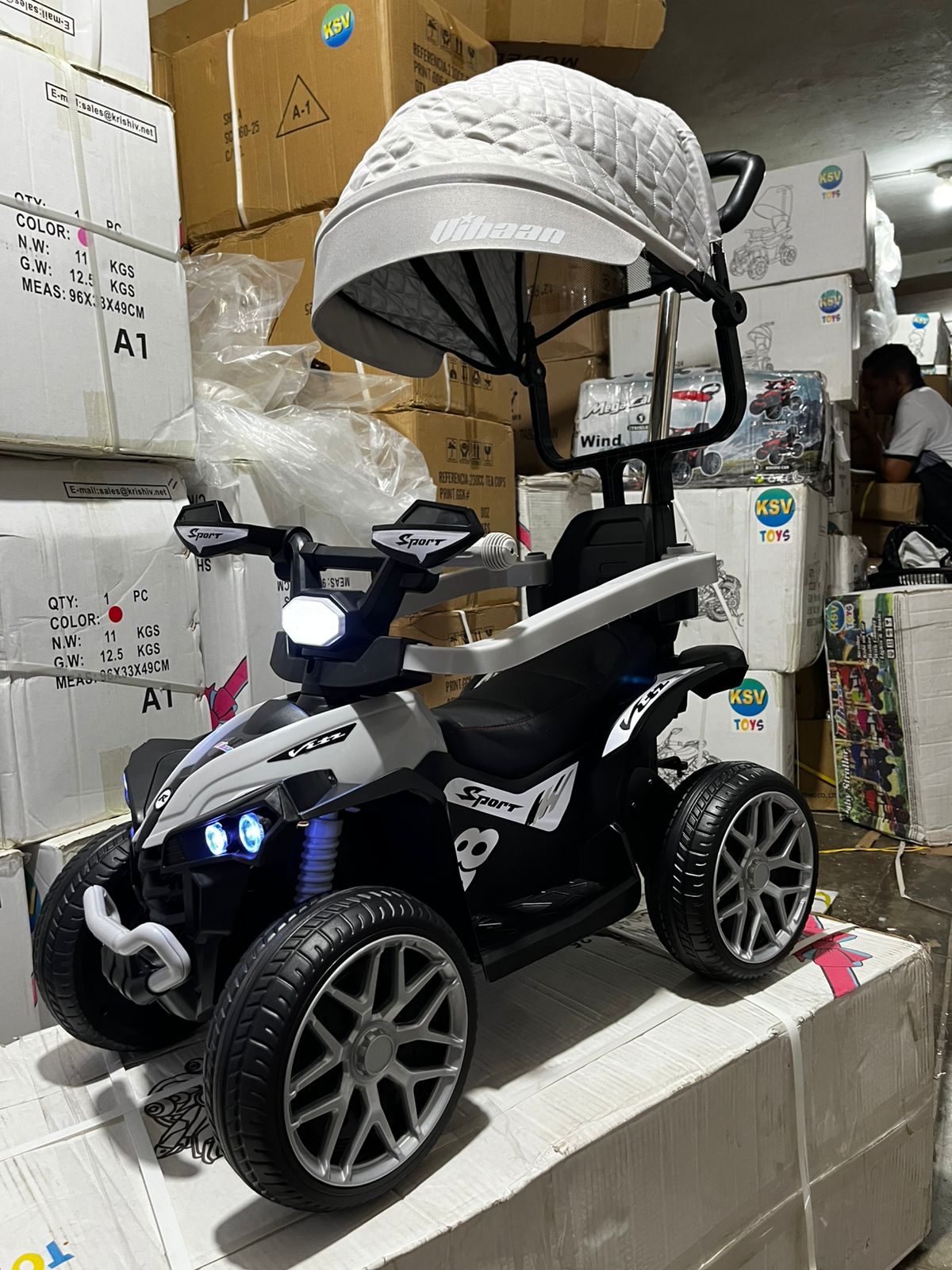 La cuatrimoto montable para niños combina diversión y seguridad en un diseño robusto y atractivo. Equipada con llantas de goma altas para mayor estabilidad, doble motor de 6 voltios que alcanza hasta 7 km/h, y luces LED que iluminan cada aventura. Incluye sombrilla protectora, guía para empujar, protecciones laterales y control remoto direccional, ideal para niños hasta los 6 años. Sus medidas (alto 65 cm, ancho 45 cm, largo 80 cm) garantizan comodidad y firmeza. Se envía desarmada por logística, con manual de instrucciones y asistencia disponible para el armado. Cada unidad es verificada y ensayada para asegurar que llegue en perfectas condiciones, lista para brindar horas de entretenimiento seguro.
